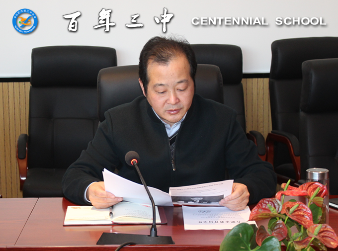 马剑强调,要把学习贯彻党的十九届五中全会精神作为一项的重要政治任务,增强“四个意识”、坚定“四个自信”、做到“两个维护”,切实把思想和行动统一到习近平总书记重要讲话和全会精神上来;要认真反思学校发展过程中存在的问题和不足,分析当前教育改革发展形势,积极谋划学校“十四五”规划,为三中下一个百年发展打下坚实的基础,为下一个百年腾飞作出卓越的贡献。