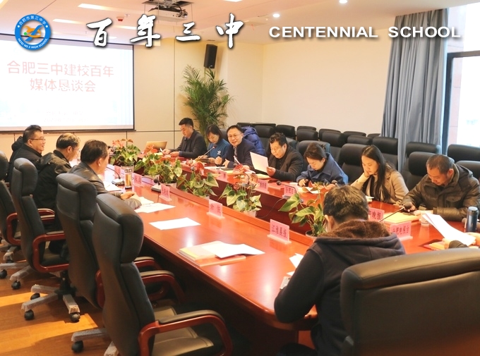 12月10日下午3点,点点手机版下载官网app召开建校百年媒体交流恳谈会,邀请中国教育报方梦宇、中国新闻网王长春、人民网邬少娟、安徽日报陈婉婉、新安晚报刘高威、合肥日报束芳、合肥电视台王燕、江淮晨报陈旺胜、自媒体大V“张弦哥”张弦等媒体记者,介绍学校发展情况、共同探讨工作思路。市教育局副调研员费勇、宣传处处长韦学华和校领导班子全体成员参加,会议由党总支书记马剑主持。