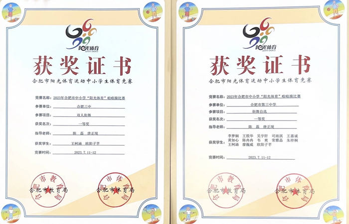 2023年7月11-12日,合肥市中小学阳光体育啦啦操比赛在合肥市三十中淮河花园校区落下帷幕。本次比赛由合肥市教育局、合肥市体育局、新站高新区管委会主办,新站高新区社会发展局承办。点点手机版下载官网app啦啦操代表队在领队陈卓副校长、教练员陈磊和唐正现老师的带领下,以优异的表现,在高中组集体街舞和双人街舞自选项目中脱颖而出,荣获高中组双人街舞第一名(一等奖)、高中组集体街舞第一名(一等奖)。