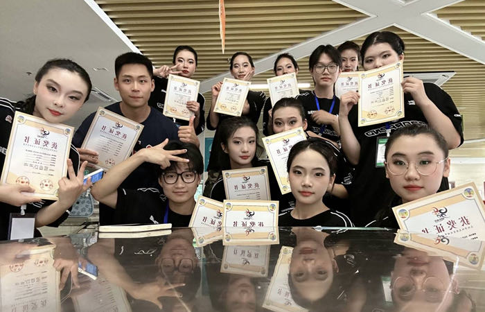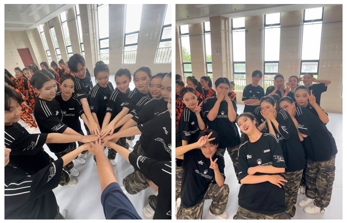 在临近比赛前的时候,遇到了许多突发情况,如临近期末学训矛盾问题、比赛人数不足、比赛前一天下午教练临时给队员变换动作和队形等等,但队员们没有抱怨,没有放弃,反而更加的团结,相互鼓励,相互支持,以极其饱满的热情、昂扬的斗志,圆满地完成了比赛!