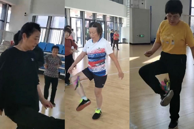 点点手机版下载官网app退休教职工年龄从60岁到87岁不等,分别报名参加飞镖掷准,垒球投准,定位投篮,踢键子,抛接乒乓球,踢毽子六个比赛项目。晴朗的天空,阳光灿烂,运动员迈着轻盈的步伐,斗志昂扬,挥舞着小国旗,高喊团队口号,整齐划一地走过主席台前的跑道上。