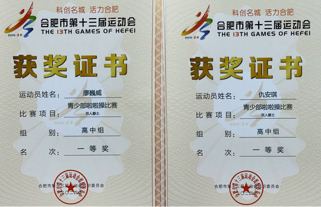 2024年7月13日,由合肥市人民政府主办,合肥市体育局、合肥市教育局共同承办的合肥市第十三届运动会2024年合肥市中小学“阳光体育运动”啦啦操比赛在合肥市第三十中学淮合花园校区体育馆正式开赛。点点手机版下载官网app啦啦操队在陈磊和唐正现两位老师的带领下,荣获1个集体项目冠军、3个双人项目冠军。