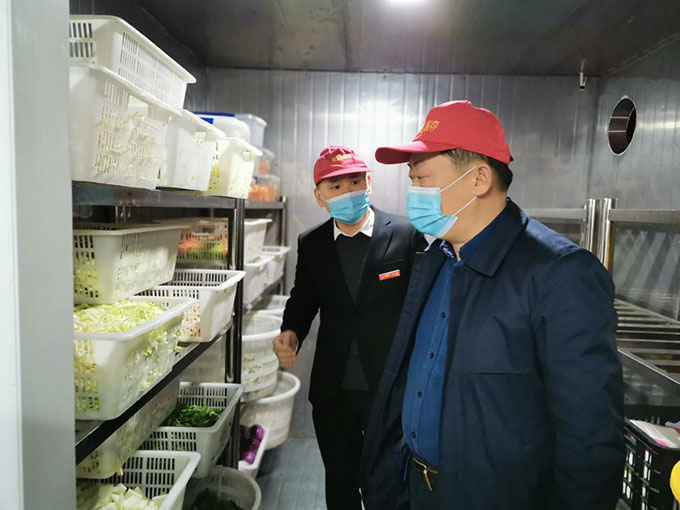 2021年11月26日上午10时,毛晓斌校长带领总务后勤管理人员来到学生餐厅,首先检查了餐厅的环境卫生、明厨亮灶、各种制度上墙等情况,认真听取了食堂负责人的汇报。随后学校一行按照校园食堂管理规范的要求逐一逐项认真检查,从餐具的清洗消毒、加工环境、食品留样、人员管理、后厨人员操作规范等关键环节进行了全面检查。仔细检查库房、冷库、食材原料、调味品等贮存食品的保质期及环境卫生情况,详细查看了进货查验、检疫报告、索证索票和台账记录情况,督促学校食堂负责人加强对关键操作环节的风险防控。