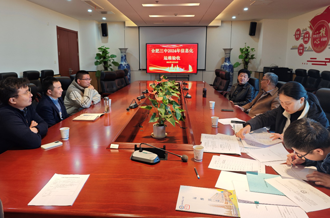 本次校园信息化运维验收旨在通过严格检验,对校园内的网络基础设施运维、教学设备硬件保障和信息化安全等方面进行全面检查和评估。合肥市装备中心副主任汪俊、装备中心陈忱、合肥十中信息中心主任赵言言对学校信息化运维工作进行全面严格的验收。