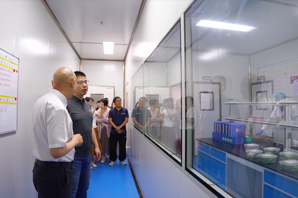 汇报结束后,家委会成员分成两队,在厂家专业人员的带领下详细地参观了中央厨房的研发室、农残检测室,并通过观摩通道参观了面点制作、自动化操作、蔬菜清洗、无菌切割包装、冷藏储存、分拣等各个智能化生产场所。现场观摩了学生餐品的标准化制作流程,并对餐具高温消毒、48小时留样制度表示高度认可,活动中,家委会代表就家长普遍关心的食材新鲜度、营养搭配、过敏源管理等问题与承包方深入交流。